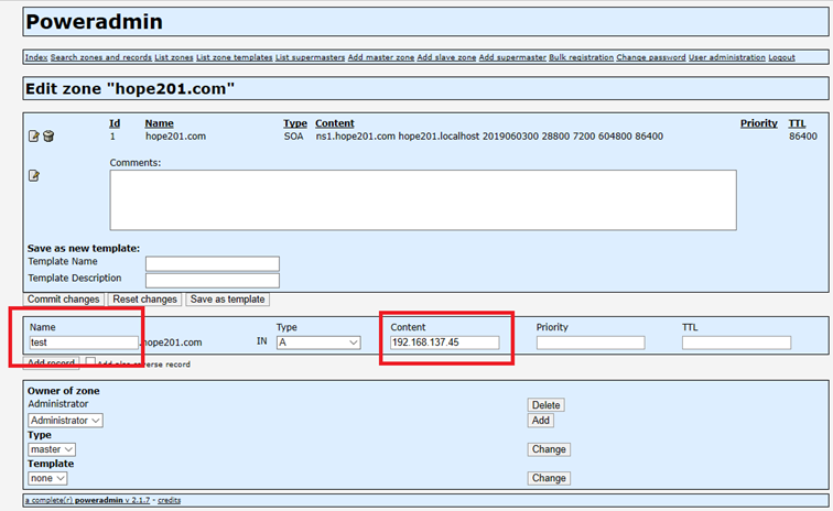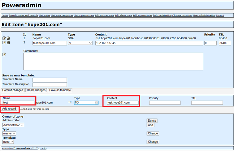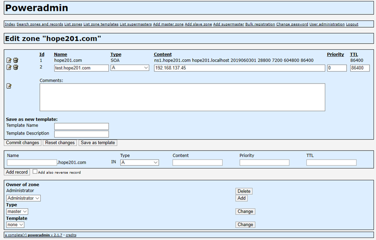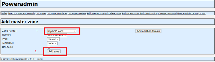 [root@localhost ~] vi /var/www/html/poweradmin-2.1.7/inc/config.inc.php